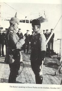 (Enver Paşa ile Alman İmparatoru Kaiser Wilhelm’in bir ziyaret esnasında çekilmiş bu fotoğrafı, Osmanlı İmparatorluğu’nun Alman emperyalizmine nasıl biat ettiğinin ispatı gibiydi.)