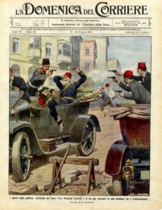 (Mahmut Şevket Paşa’nın katledildiği suikasti tasvir eden bir İtalyan gazetesi)