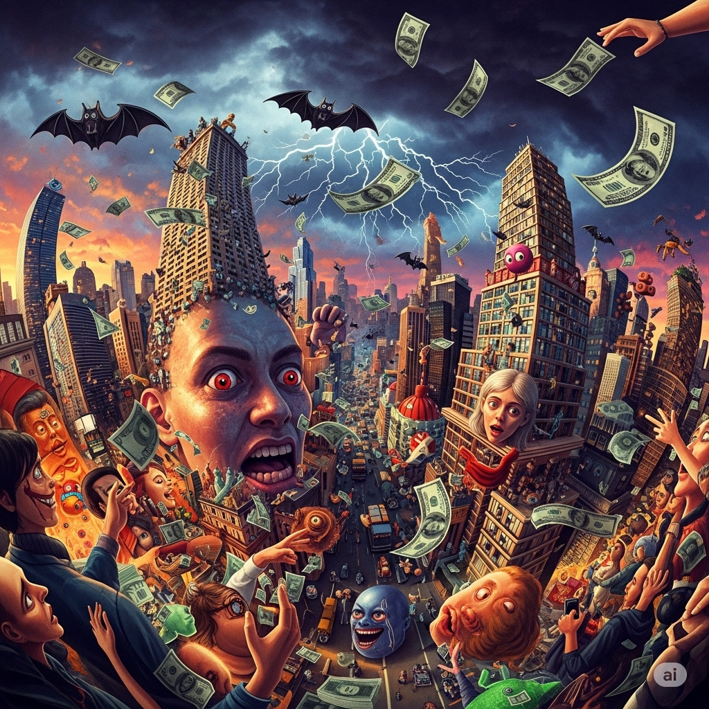 (Bir finansal çılgınlık rejimi olarak neoliberalizmi nasıl tasvir edersin? sorumuza YZ bize bu sürrealist biçimli resmi verdi-editör)