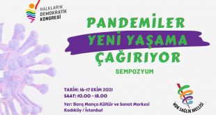 Halkların Demokratik Kongresi Sağlık Meclisi’nin 16-17 Ekim 2021 tarihinde düzenlediği “Pandemiler Yeni Yaşama Çağırıyor” sempozyumuna katılmanızdan mutluluk duyarız. Tarih: 16-17 Ekim 2021 Saat: 10.00-18.00 Yer: Barış Manço Kültür ve Sanat Merkezi Kadıköy / İstanbul Program