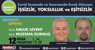 Karantina TV’de canlı olarak yayınlanan EKONOMİ GÜNCESİ programının konusu “Covid Sırasında ve Sonrasında Emek Dünyası: İşsizlik, Yoksulluk ve Eşitsizlik”. Prof. Dr. Haluk Levent* ve Prof. Dr. Mustafa Durmuş**, salgın hastalık dönemde alınan tedbir ve kararların emek dünyasına yansımalarını, gelecek döneme ilişkin olası sonuçlarını ve gelişmeleri emekçiler ve yoksul halk açısından değiştirebilme yöntemlerini masaya yatırıyorlar. Karantina TV canlı yayınlarına …